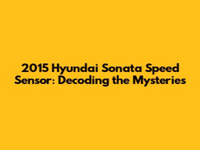2015 Hyundai Sonata Speed Sensor: Symptoms, Causes, And Fixes