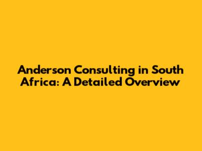 Anderson Consulting In South Africa: A Detailed Overview