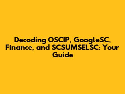 Decoding OSCIP, GoogleSC, Finance, And SCSUMSELSC: Your Guide