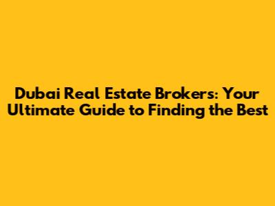 Dubai Real Estate Brokers: Your Guide To Finding The Best