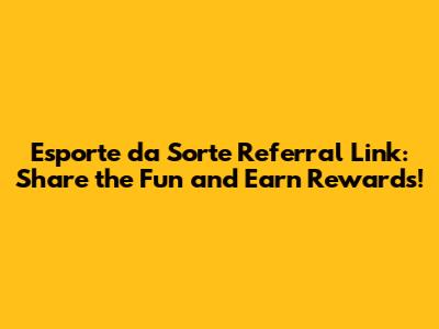 Esporte Da Sorte: Get Your Referral Link Now!