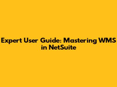 Expert User Guide: Mastering WMS In NetSuite