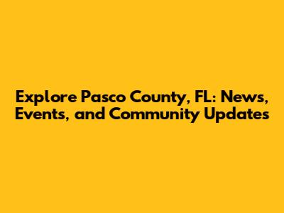 Hey everyone! Welcome to a deep dive into the heart of Pasco County, Florida. We're going to explore what makes this community tick – from the latest local news to exciting events and everything in between. Whether you're a long-time resident, a newcomer, or just curious about what Pasco County has to offer, this is your go-to guide. Let's get started, shall we?
