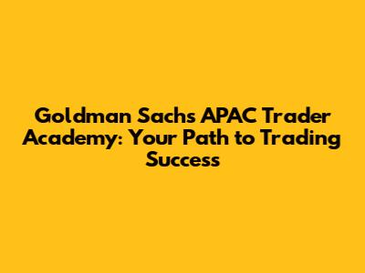 Goldman Sachs APAC Trader Academy: Your Path To Trading Success