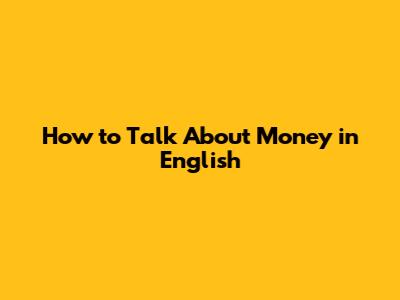 How To Talk About Money In English