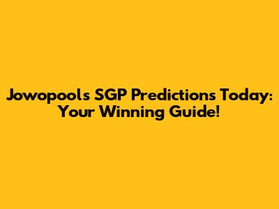Jowopools SGP Predictions Today: Your Winning Guide!