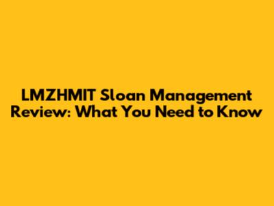 LMZHMIT Sloan Management Review: What You Need To Know