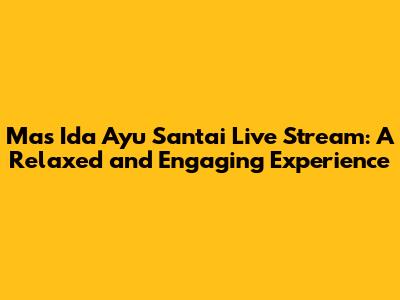 Hey guys! Ever stumbled upon a live stream that just feels right? Like, you can kick back, relax, and just enjoy the vibe? Well, today we're diving into the world of Mas Ida Ayu Santai Live. If you're looking for some chill content that’s both entertaining and easy to watch, you’ve come to the right place. We’ll explore what makes these streams so captivating, why people love tuning in, and what you can expect when you join in on the fun. Get ready to discover your new favorite way to unwind!