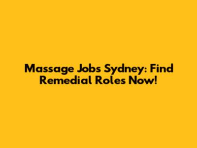 Massage Jobs Sydney: Find Remedial Roles Now!