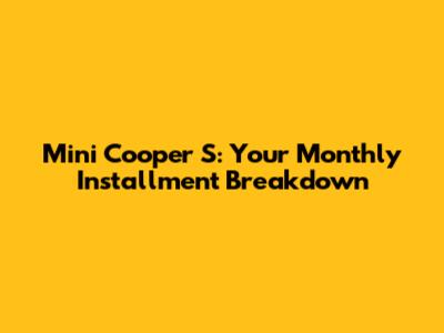 Mini Cooper S: Your Monthly Installment Breakdown