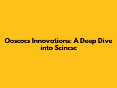 Ooscocs Innovations: A Deep Dive Into Scincsc