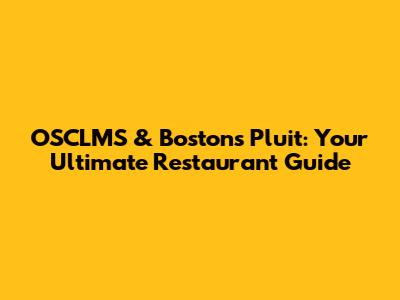 OSCLMS & Boston's Pluit: Your Ultimate Restaurant Guide