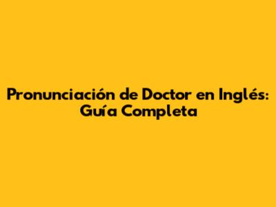 Pronunciación De 'Doctor' En Inglés: Guía Completa