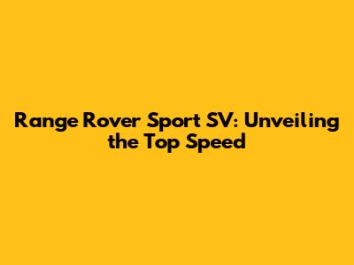 Hey guys! Let's dive into the exhilarating world of the Range Rover Sport SV and uncover its top speed. This beast of an SUV isn't just about luxury and comfort; it's a performance powerhouse. If you're curious about how fast this high-performance vehicle can really go, you're in the right place. We're going to break down the specs, engine capabilities, and everything that contributes to the Range Rover Sport SV's impressive velocity.