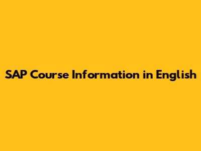 SAP Courses: Info, Details, And English Training