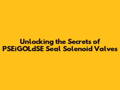 Unlocking The Secrets Of PSEiGOLdSE Seal Solenoid Valves