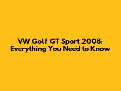 VW Golf GT Sport 2008: Specs, Features & More!